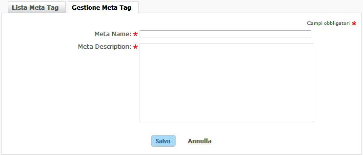Nella modifica di un meta tag personalizzato questo campo è obbligatorio.